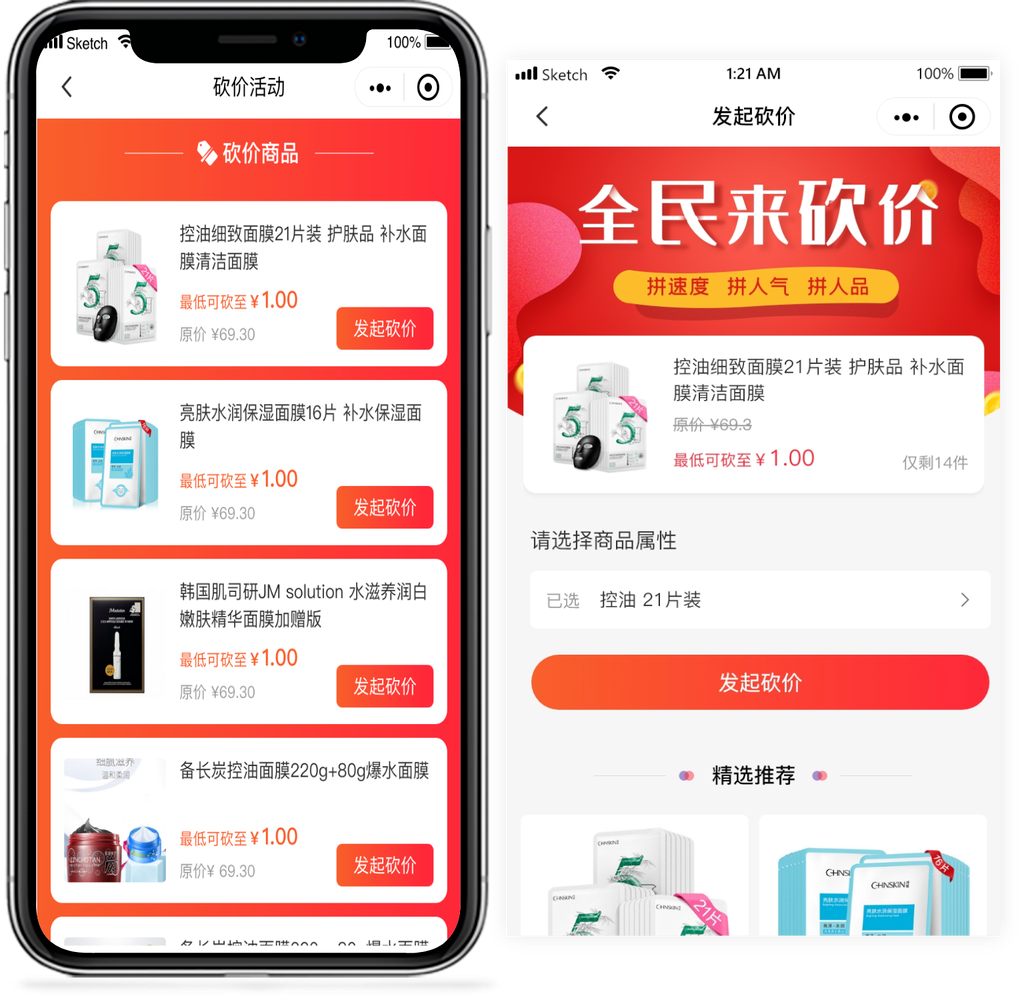 社交电商火热引流的方式之一,通过好友砍价带来大量新粉丝,同时提高商城订单量。