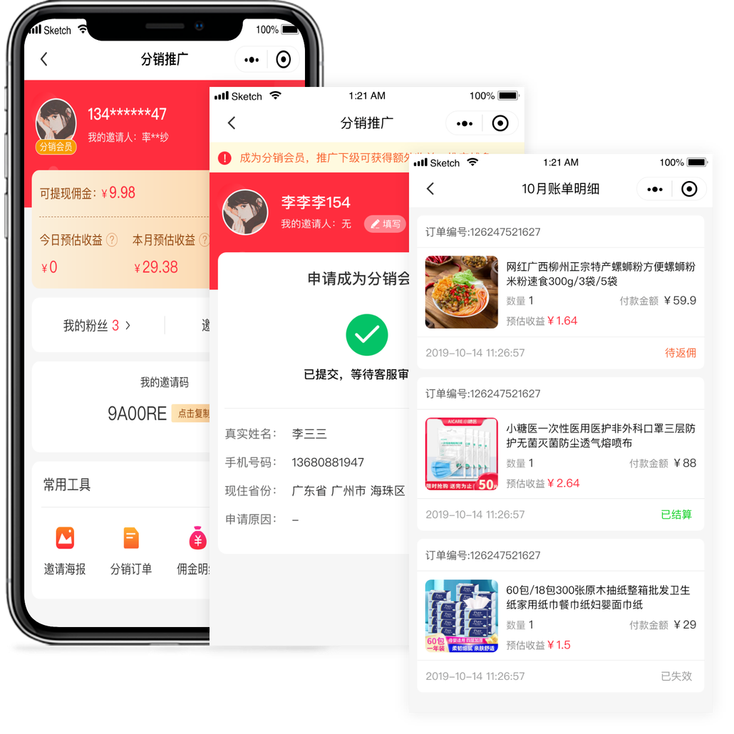 微信社交分销裂变,一键分享,快速发展商城下线粉丝,粉丝下单,上级躺赚。